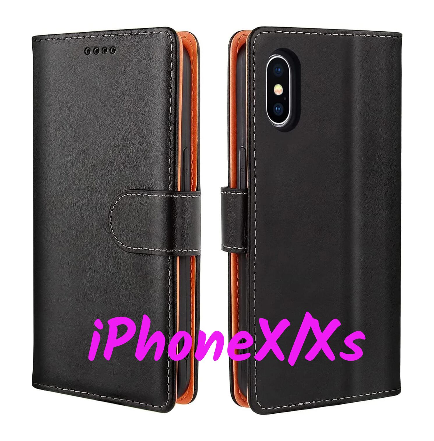519.iPhoneX/Xsケース 手帳型 マグネット式 手触りが良い ブラック 519
