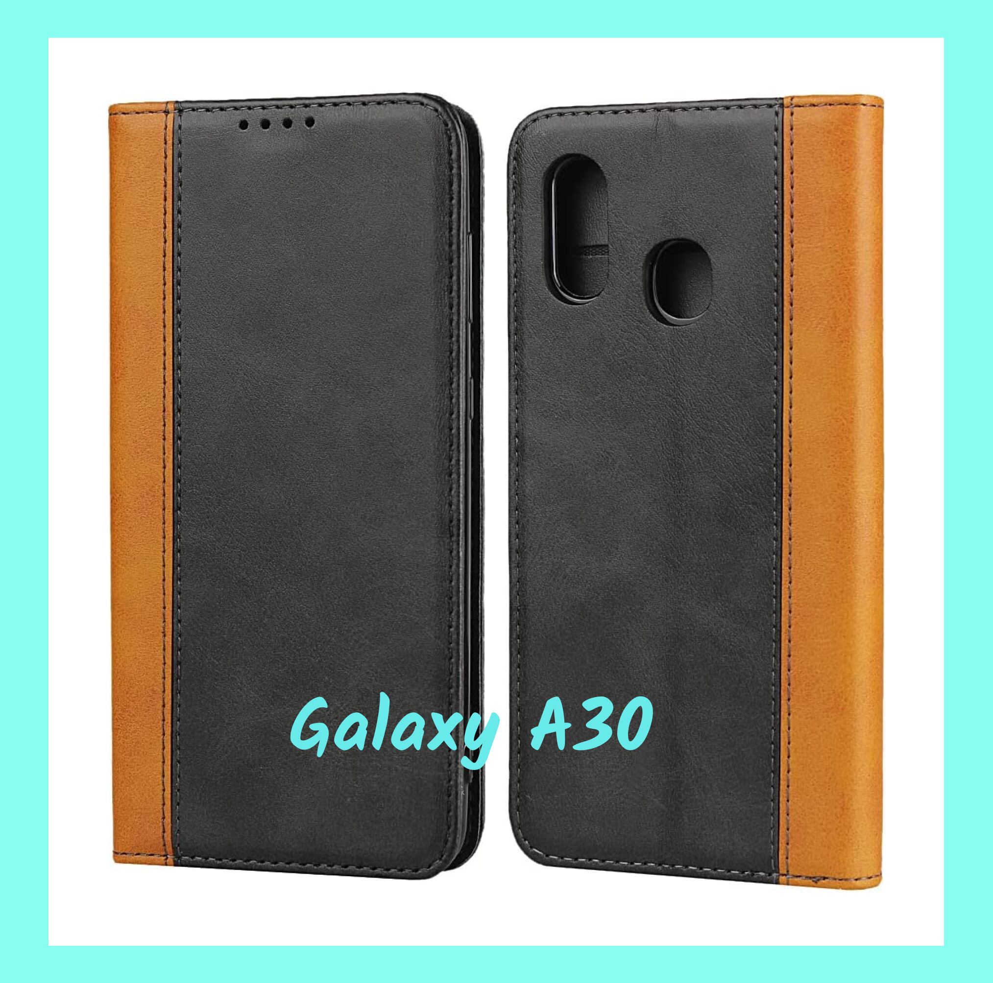 489.GalaxyA30ケース 手帳型 マグネット式 スタンド機能 黒・黄 489