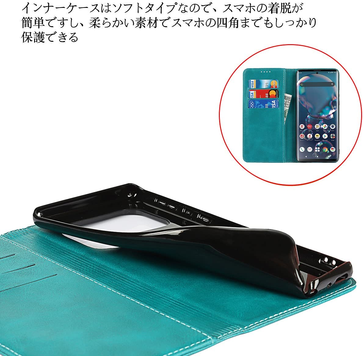 内蔵マグネットの手帳型ケース。